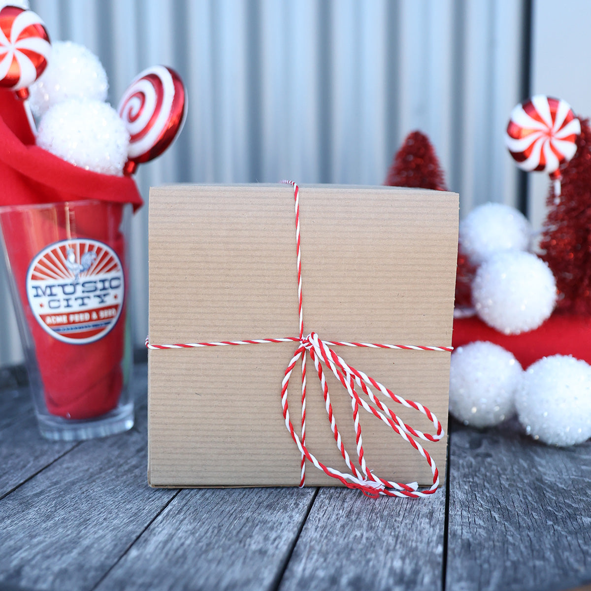 Each gift comes shrink wrapped with a twine or holiday bow, ready to rock and roll to your doorstep!